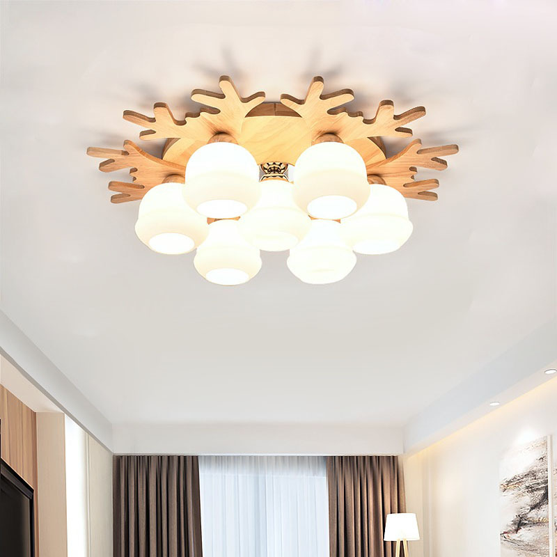 創意鹿角吸頂燈led簡約現代個性餐廳房間臥室燈具北歐實木客廳燈
