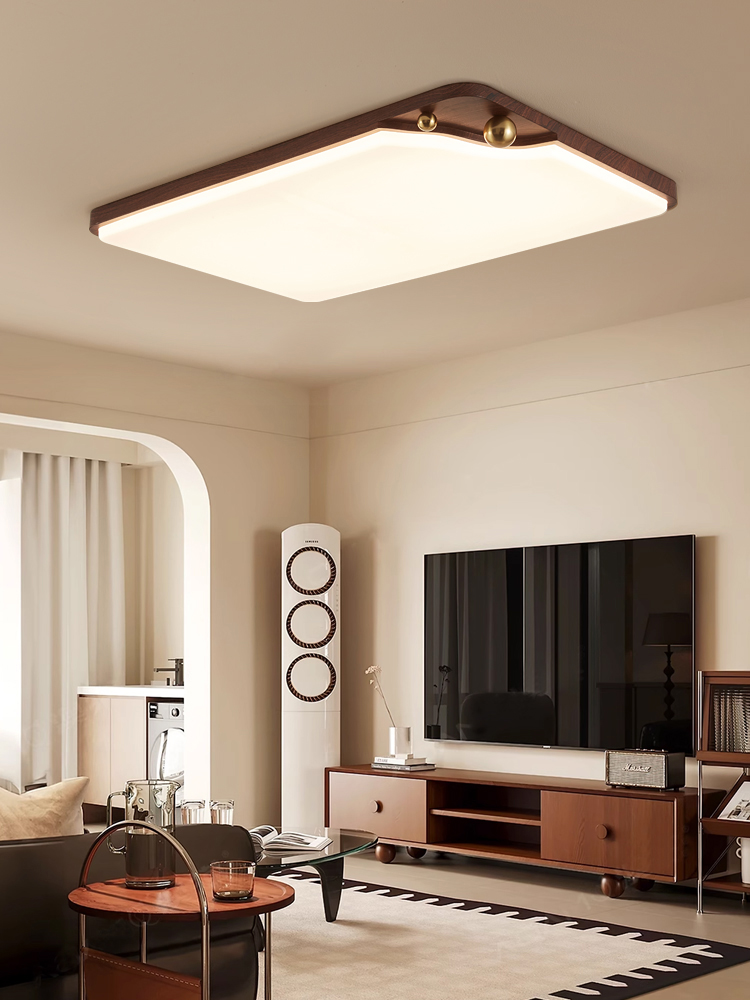 2024年新款客廳吸頂燈美式復古胡桃色大廳主燈中古風全光譜臥室燈