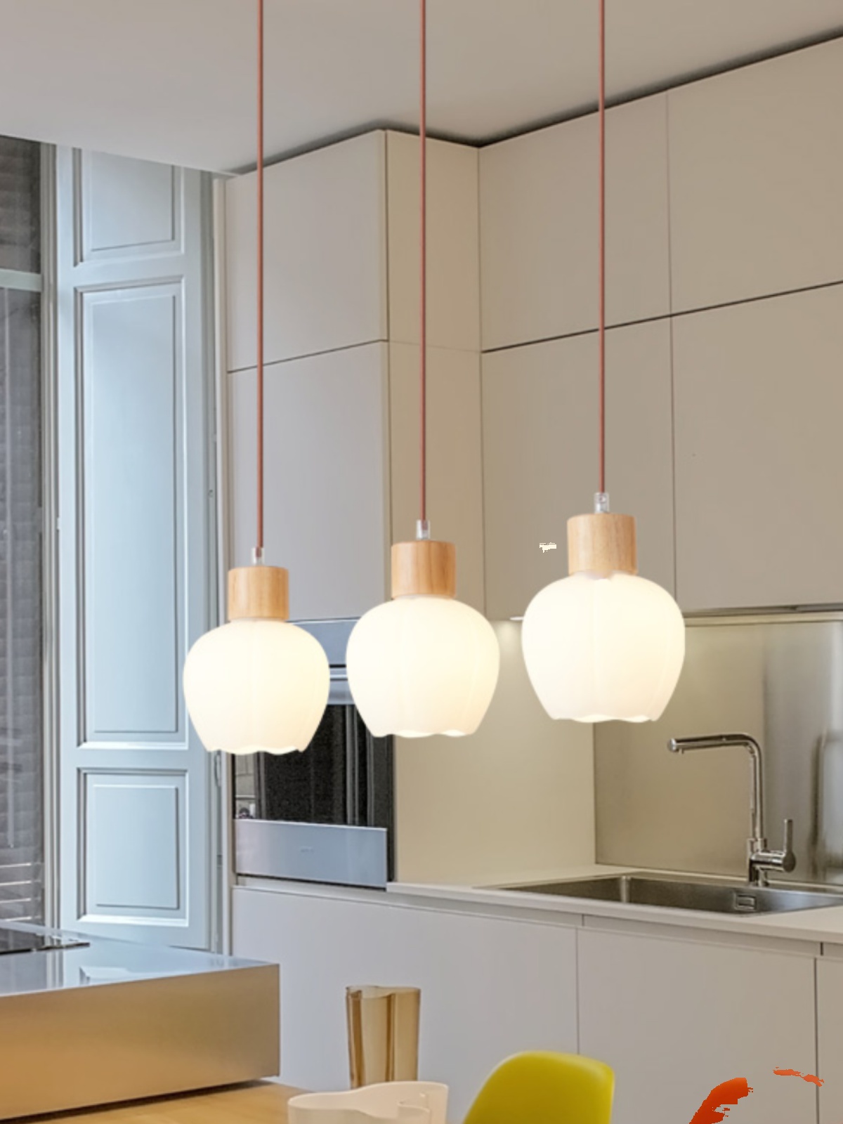 北歐餐廳吊燈實木三頭原木風客飯廳吧檯燈2024流行新款網紅簡約燈