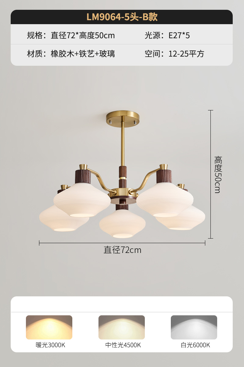 B款5头胡桃色+12瓦led灯泡