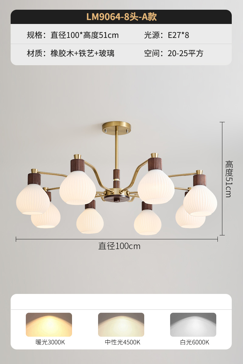 A款8头胡桃色+12瓦led灯泡