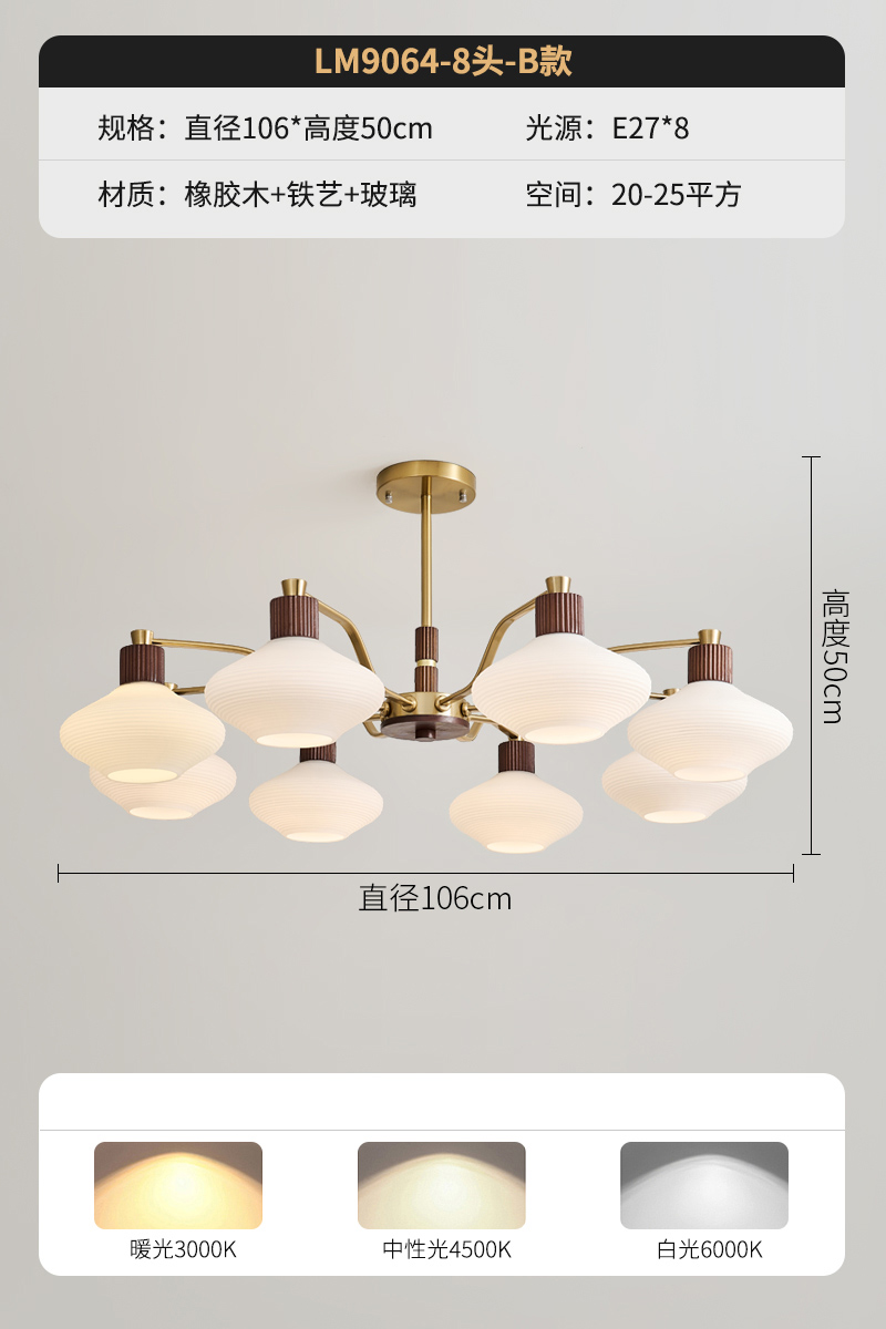B款8头胡桃色+12瓦led灯泡
