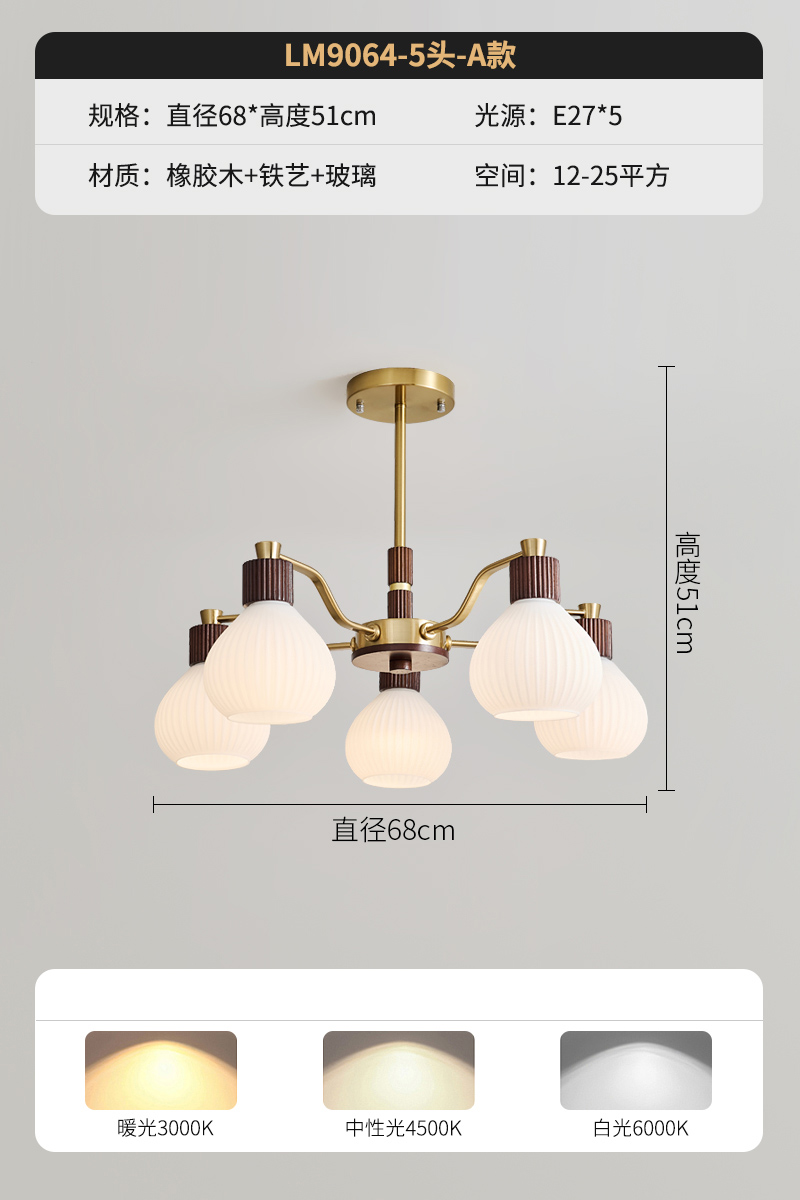 A款5头胡桃色+12瓦led灯泡