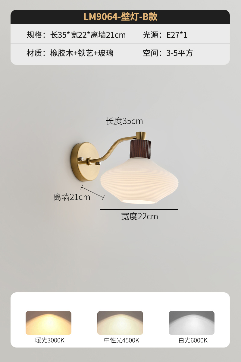A款胡桃色壁灯+12瓦led灯泡